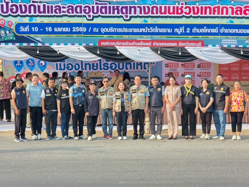 องค์การบริหารส่วนตำบลโคกแย้ นำโดยนางสาวเปรมยุดา บุญจันทร์แดง นายกองค์การบริหารส่วนตำบลโคกแย้ เป็นประธานในพิธีเปิดกิจกรรมป้องกันและลดอุบัติเหตุทางถนนช่วงเทศกาลสงกรานต์ ประจำปี 2569 พร้อมคณะผู้บริหาร หัวหน้าส่วนราชการ งานป้องกันฯ สมาชิกสภาฯ ผู้ใหญ่บ้าน ผู้ช่วยผู้ใหญ่บ้าน และ อปพร.ตำบลโคกแย้ เพื่อดูแลและอำนวยความสะดวกให้กับประชาชน ป้องกันและลดอุบัติเหตุทางถนนช่วงเทศกาลสงกรานต์ ระหว่างวันที่ 10 เมษายน 2569 ถึงวันที่ 16 เมษายน 2569