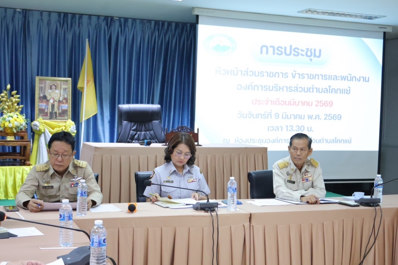 นางสาวเปรมยุดา บุญจันทร์แดง นายกองค์การบริหารส่วนตำบลโคกแย้ นำคณะผู้บริหาร หัวหน้าส่วนราชการ ข้าราชการ และ พนักงานองค์การบริหารส่วนตำบลโคกแย้ เข้าร่วมประชุมหัวหน้าส่วนราชการ ,ประชุมพนักงาน อบต.โคกแย้ ประจำเดือนมีนาคม 2569 โดยท่านนายกเปรมยุดา ได้ร่วมพบปะพูดคุยและติดตามงานในเดือนที่ผ่านมา รับฟังปัญหาในการทำงาน เพื่อให้พนักงานทุกคนมีส่วนร่วมในการพัฒนาตำบลโคกแย้ ให้เป็นไปในทิศทางเดียวกัน ณ ห้องประชุมองค์การบริหารส่วนตำบลโคกแย้